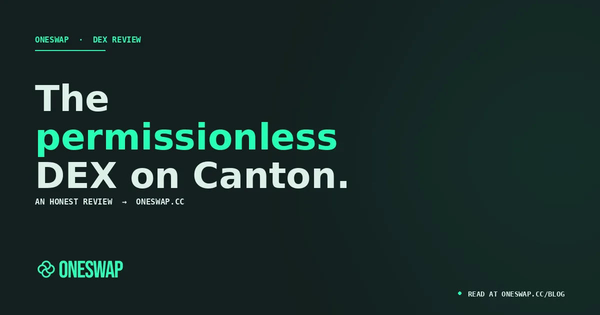 This review covers everything you need to know about OneSwap: what it is, how the AMM works, which pools are live, what LPs earn, how the UX holds up, and where it sits relative to what else exists on Canton. The goal is a fair, detailed assessment not a sales pitch.